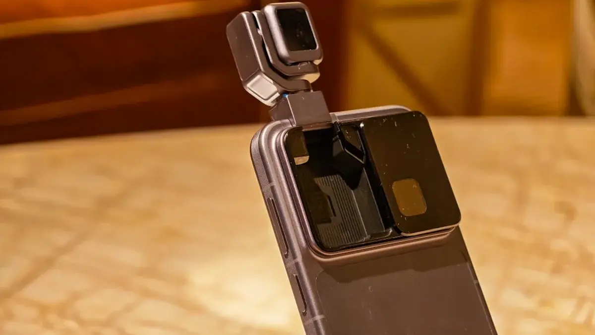 Mechanizm chowany chowa się w obudowie smartfona, gdy nie jest używany, dzięki czemu konstrukcja urządzenia pozostaje funkcjonalna w codziennym użytkowaniu.